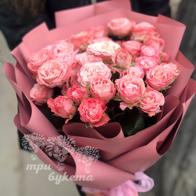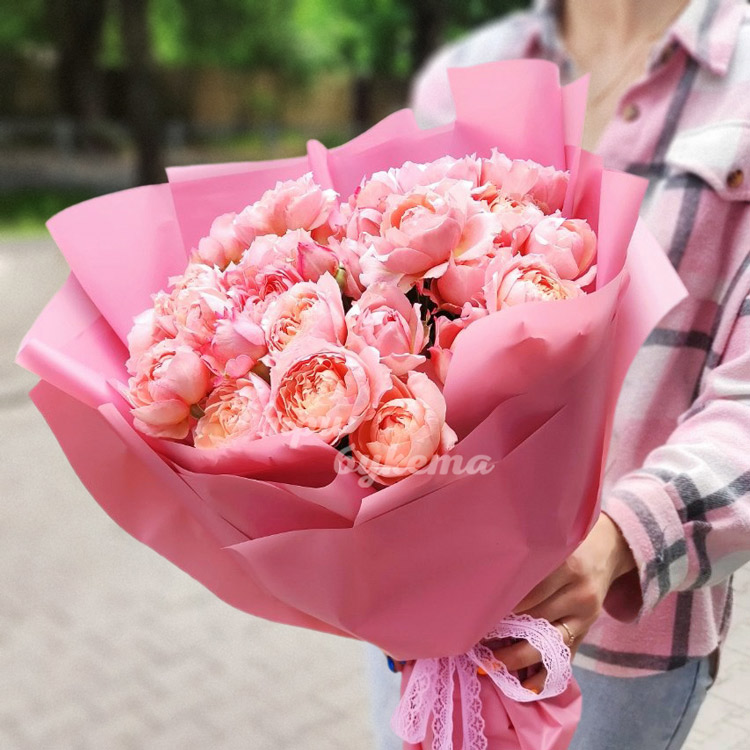 • Кустовые пионовидные розы (розовые), 9 шт.