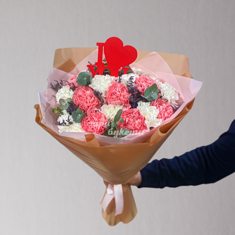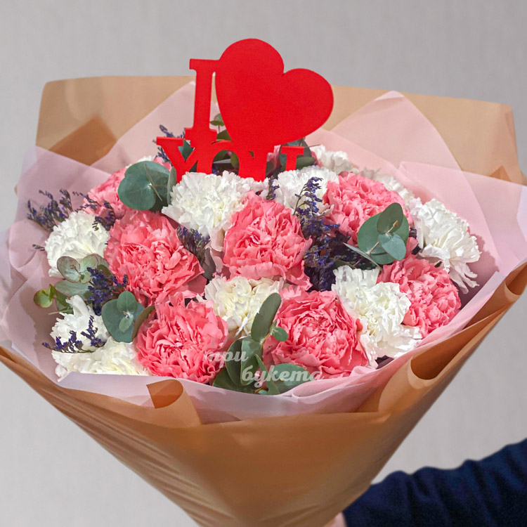 Белые и розовые гвоздики на 8 марта