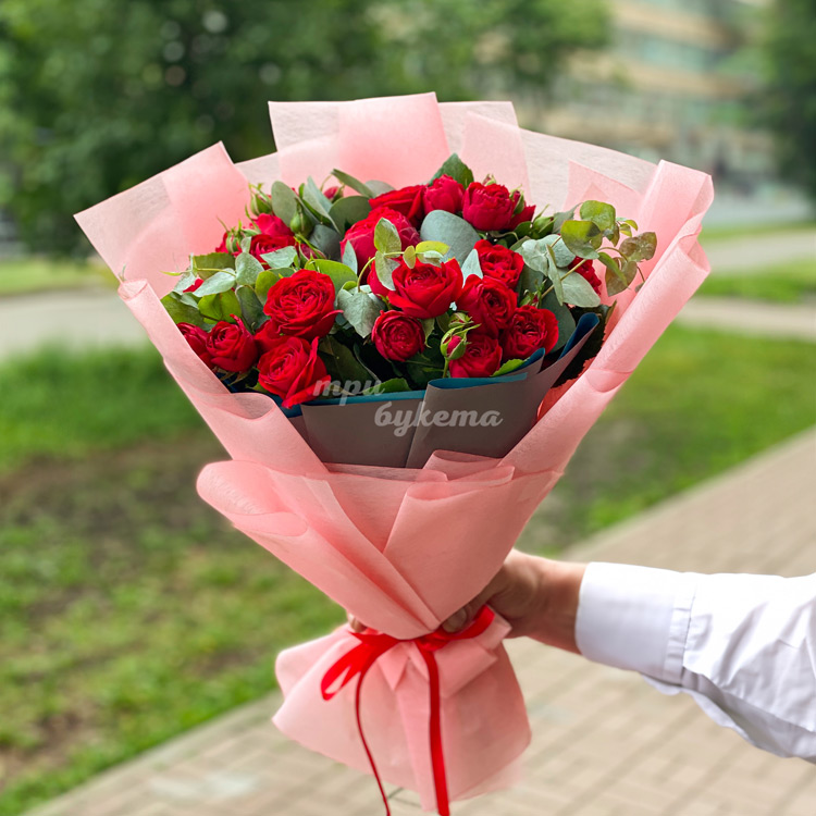 Букет 11 красных куст. пионовидных роз