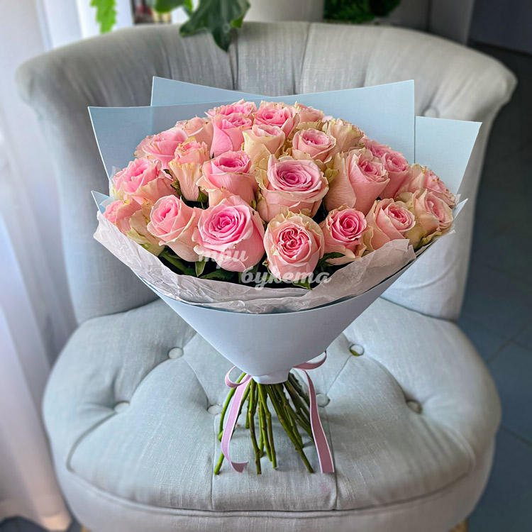 Букет из 35 розовых кенийских роз