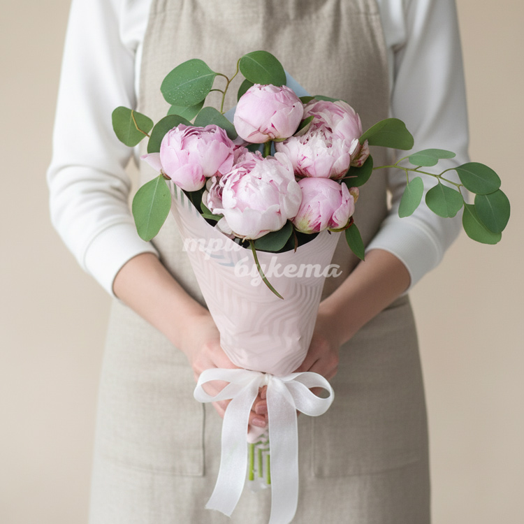 Букет из 5 пионов и эвкалипта