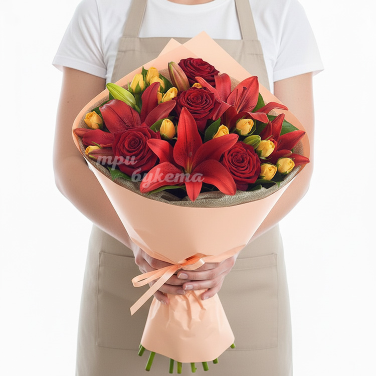 Букет из красных лилий и роз