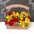 Букет из красных роз и хризантем