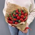 Букет из красных роз и клубники