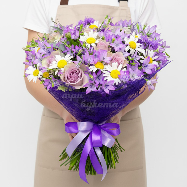 Букет из ромашек и колокольчиков