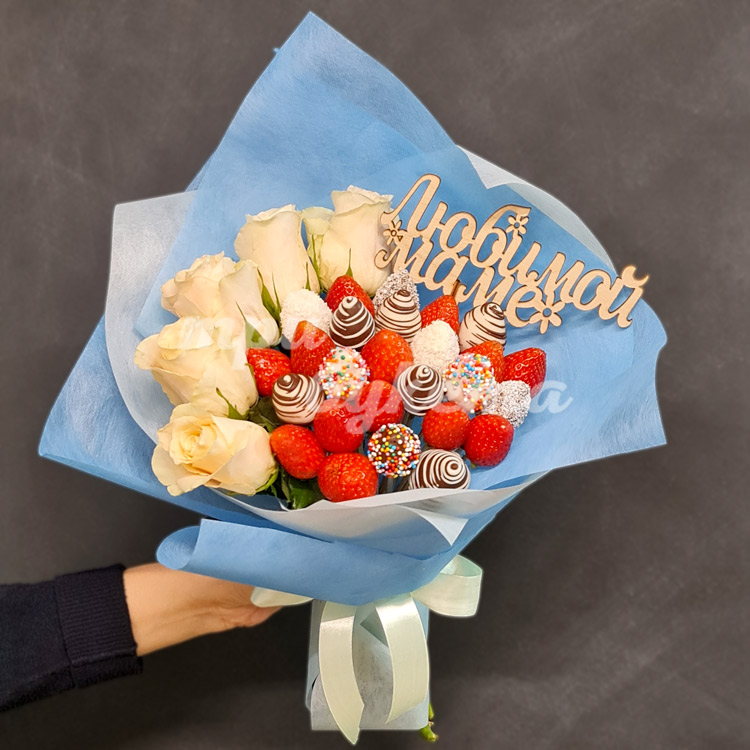 Букет из роз и клубники для мамы
