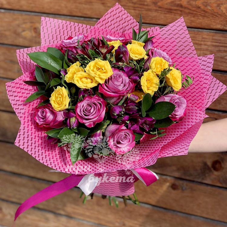 Букет из розовых и желтых роз