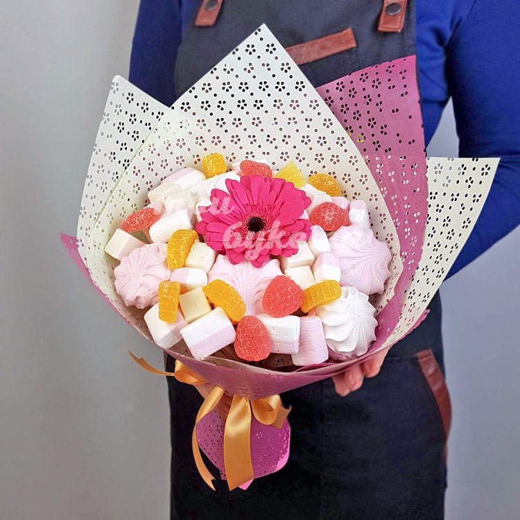 Букет из зефира, пастилы и герберы