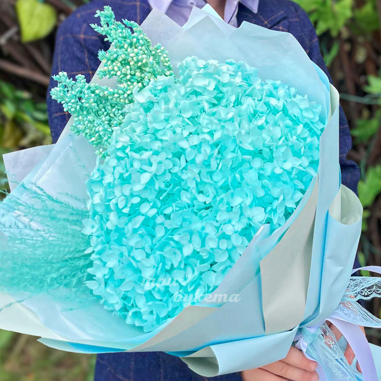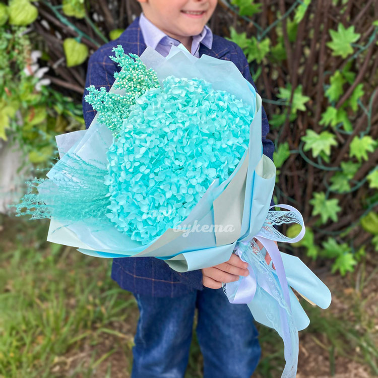 Букет на 1 сентября из бирюзовой гортензии