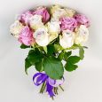 Букет сиреневых роз и кремовых гортензий