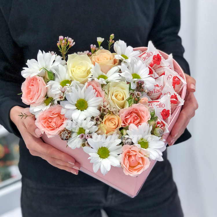 Комп. из роз и хризантем с Raffaello