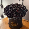Коробка макарун с розами и фрезиями
