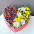 Коробка с клубникой и белой орхидеей