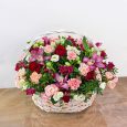 Корзина красных роз с эвкалиптом