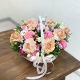 Корзина роз с хризантемами и аспарагусом