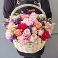 Корзина с разноцветными тюльпанами