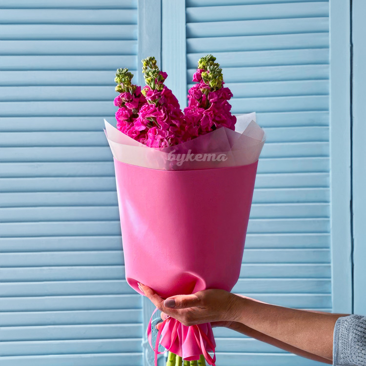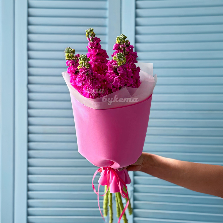 Яркий букет из 5 розовых маттиол